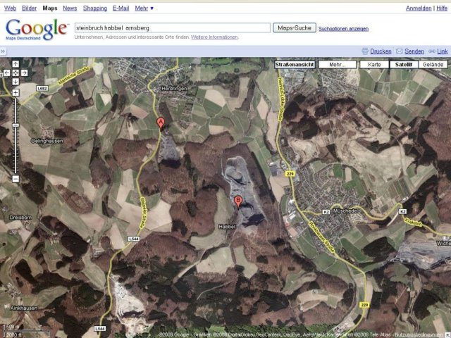 Punkten "A" (Steinbruch-Betrieb Herdringen Gebrüder Neveling GmbH) und
